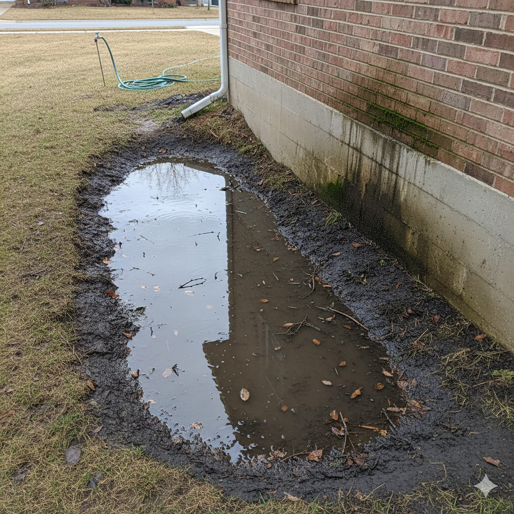 - Clogged gutters and improperly placed downspouts can cause water to accumulate near the home.