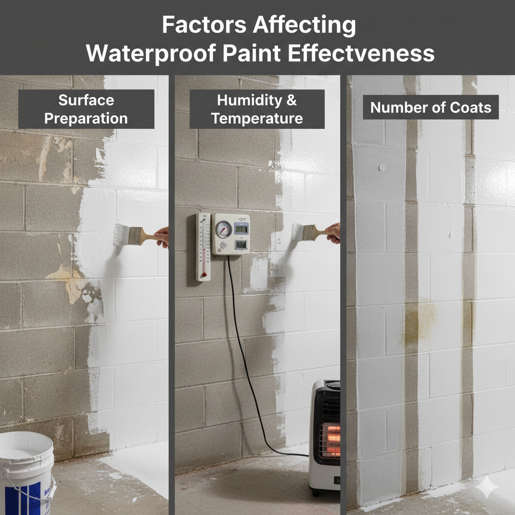 - Waterproof paint does not seal structural cracks, so addressing these issues beforehand is essential.