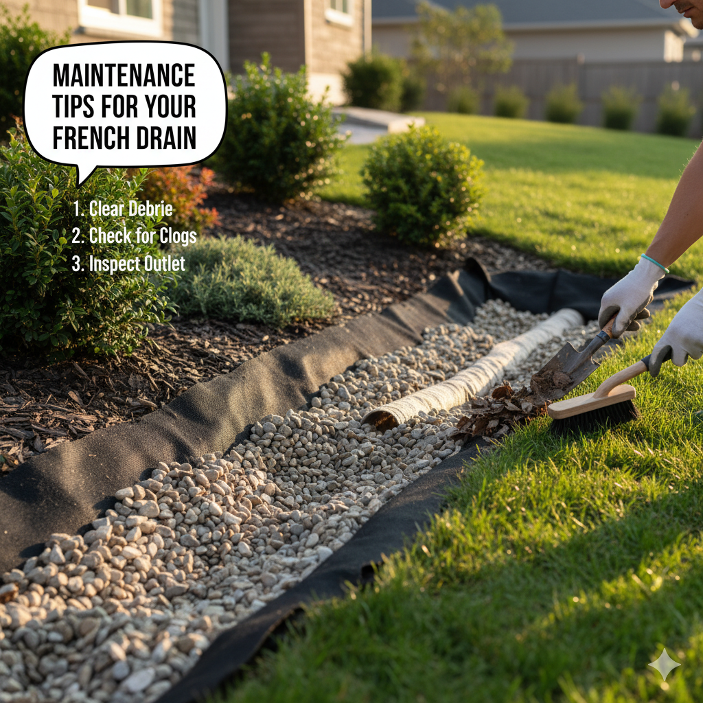 Although your French drain is designed to efficiently manage water flow, regular maintenance is essential to confirm its long-term effectiveness.