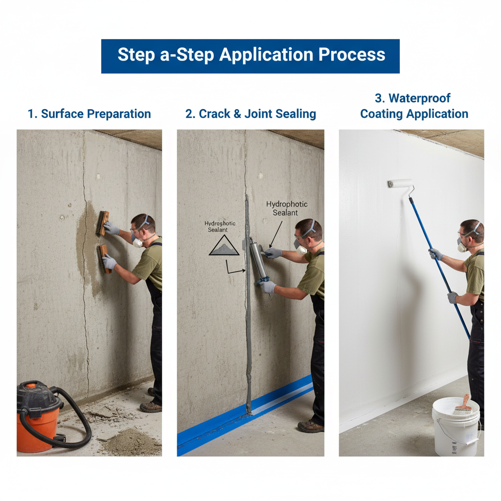 - Begin by preparing your basement: clear all items, inspect for damage, and ensure surfaces are clean and dry before application.